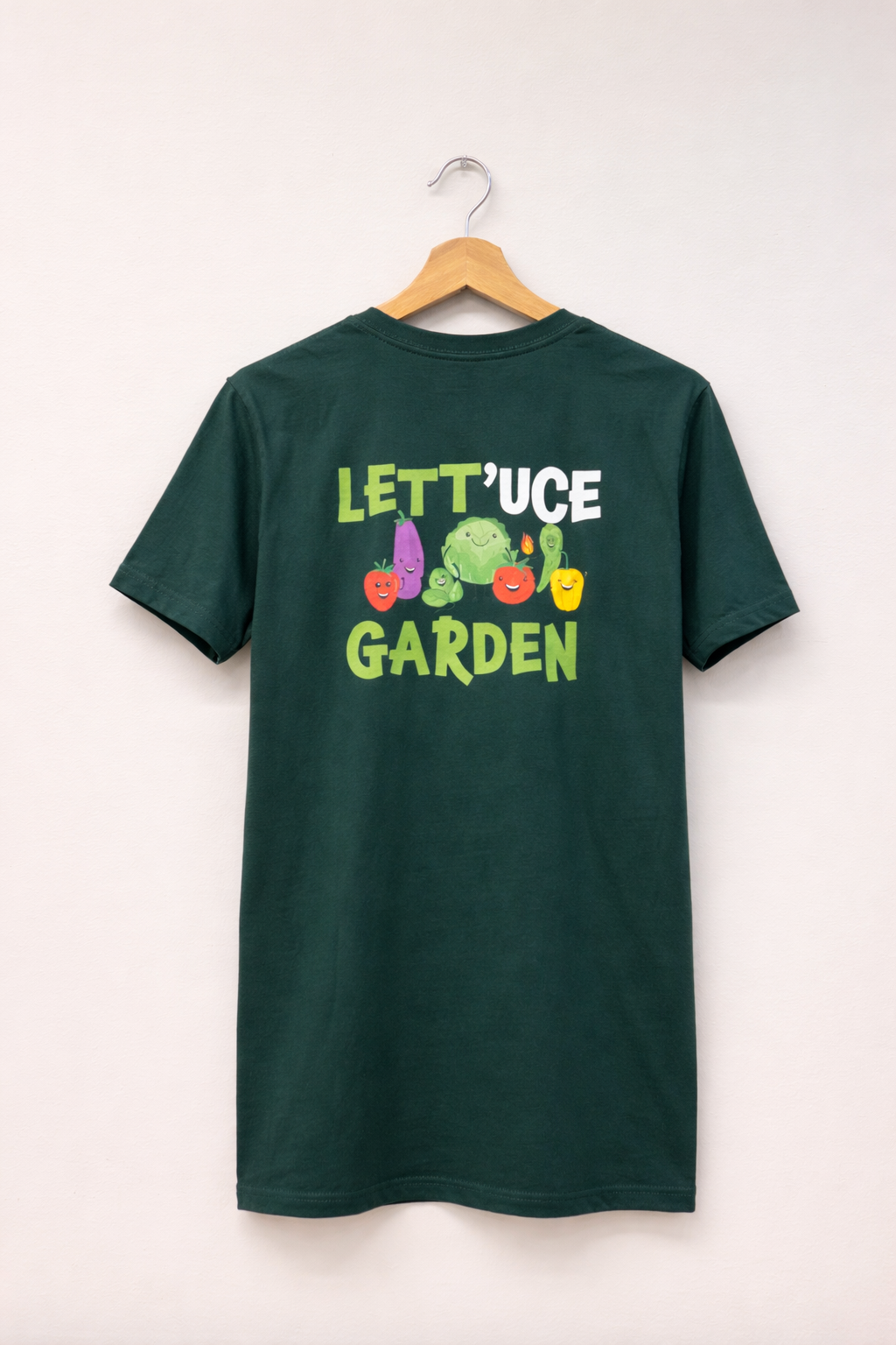 Inspiring people to grow logo on front and Lett’uce Garden logo on back.